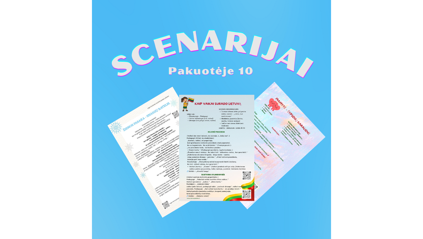 Nurodyki, kurio Scenarijų paketo nori: "Mamyčių šventei" (10 scenarijų), ar "Lietuvos šventei" (10 scenarijų), ar "Žiemos šventei (10 scenarijų).